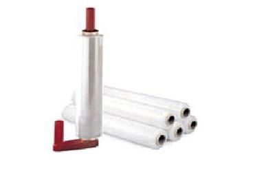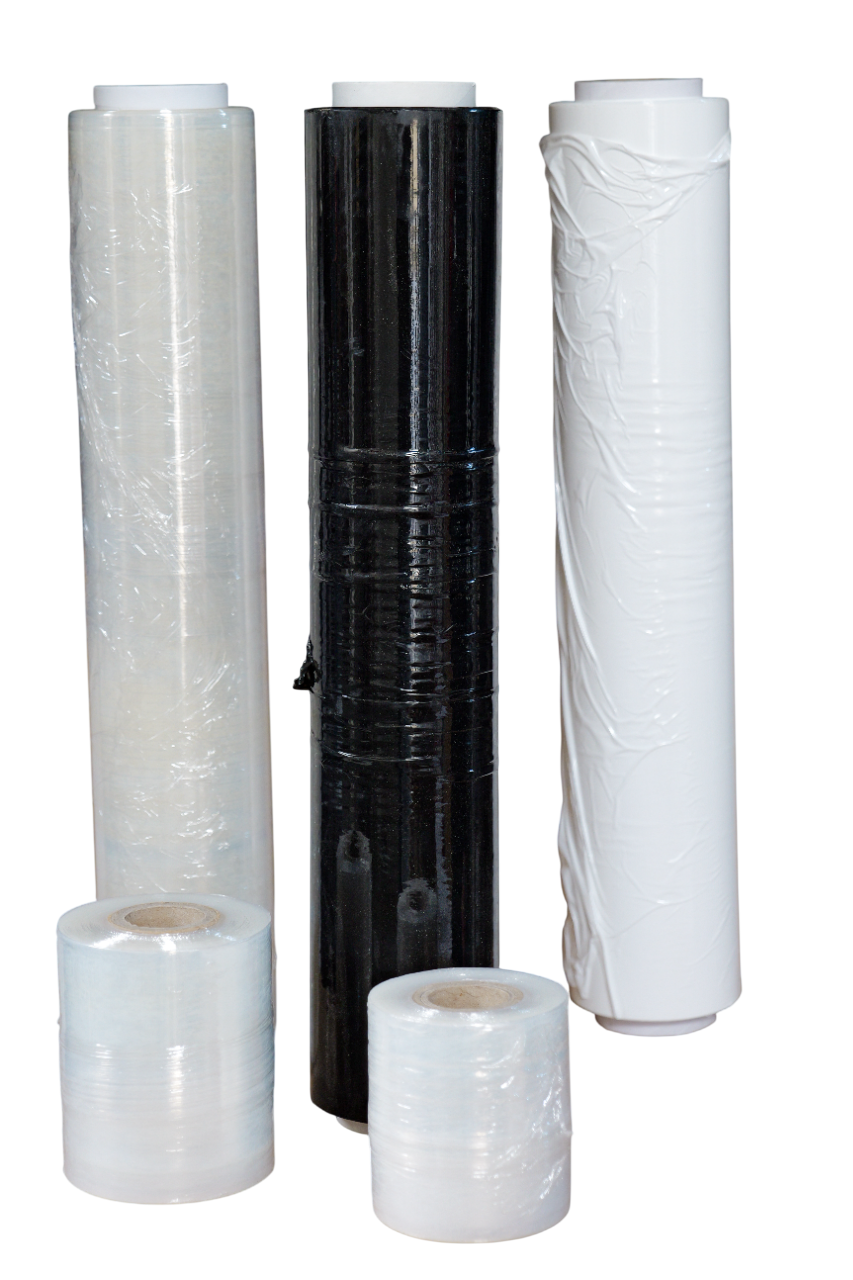 - Pellicola estensibile ad uso automatico bianca, nera e trasparente in rotoli da 16 kg ciascuno.